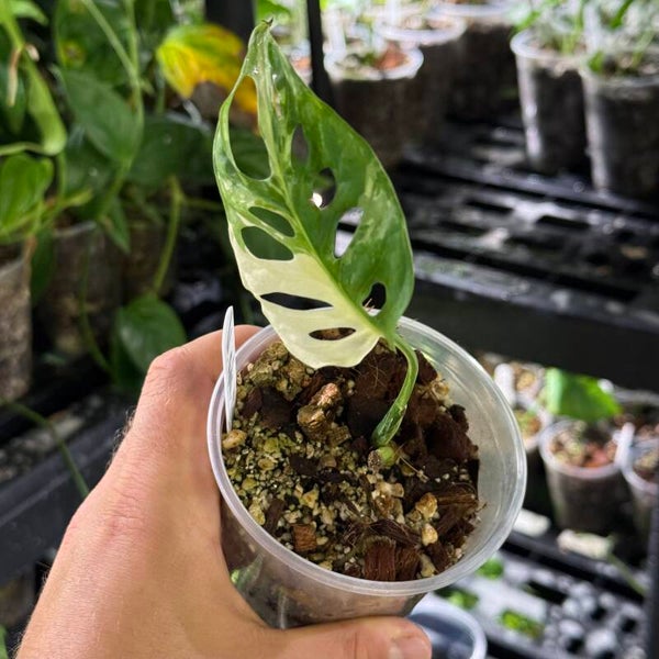 Mit ihrer einzigartigen Farbkombination und den eleganten, durchbrochenen Blättern ist die Monstera adansonii Japanese Tricolor Variegata ein Highlight in jeder Pflanzensammlung und ein begehrtes Schmuckstück für Innenräume.